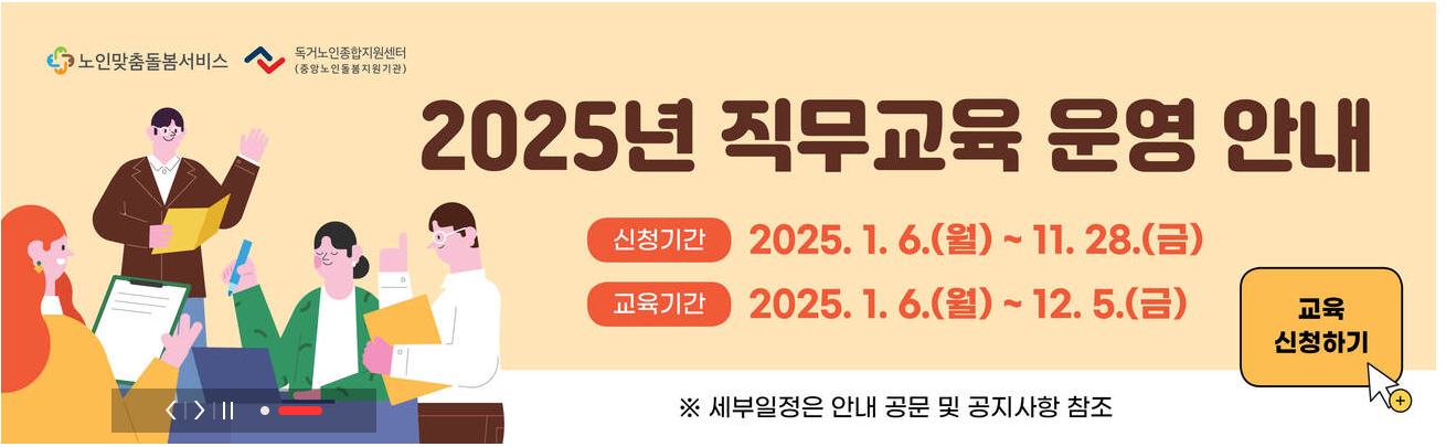 노인맞춤돌봄서비스 업무 수행을 위한 필수 교육입니다.