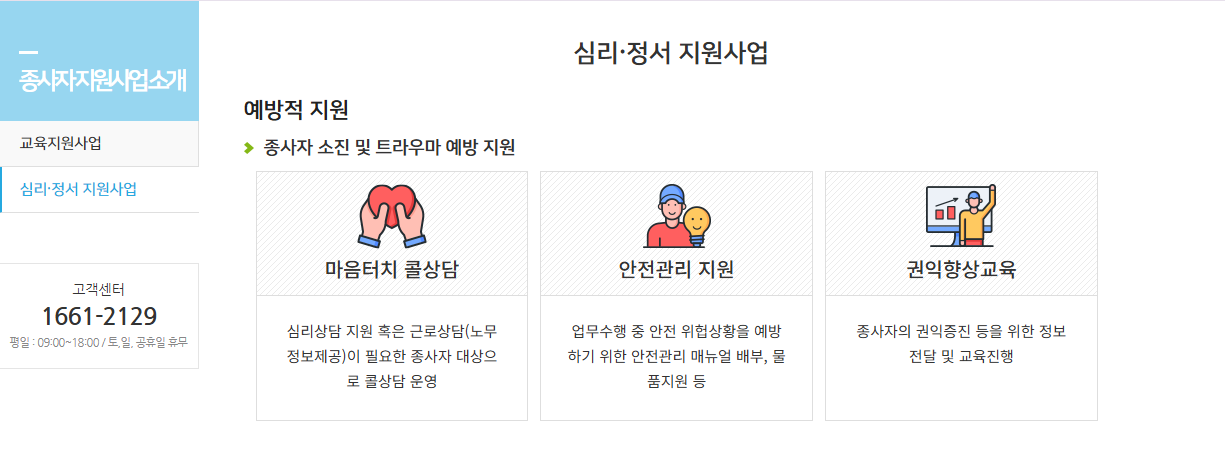 「종사자 지원사업 소개」 → 교육지원사업, 심리·정서 지원사업